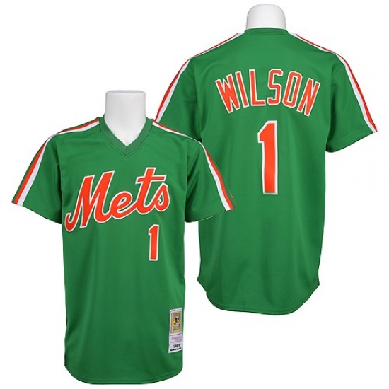 Men's Mitchell and Ness New York Mets #1 Mookie Wilson Authentic Green Throwback MLB Jersey