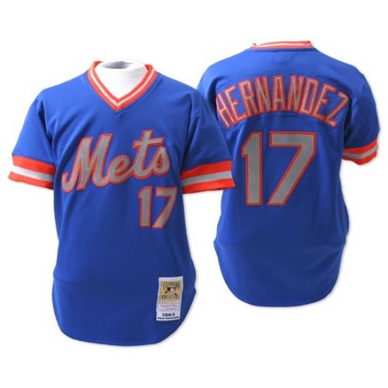Men's Mitchell and Ness New York Mets #17 Keith Hernandez Replica Blue Throwback MLB Jersey
