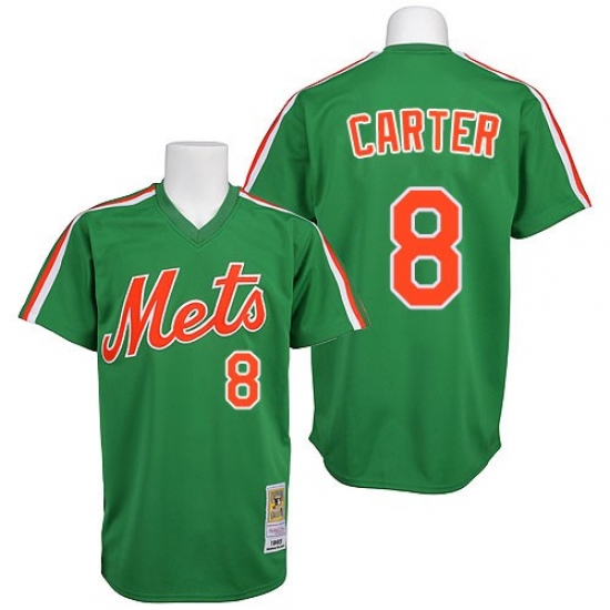 Men's Mitchell and Ness New York Mets #8 Gary Carter Authentic Green 1985 Throwback MLB Jersey