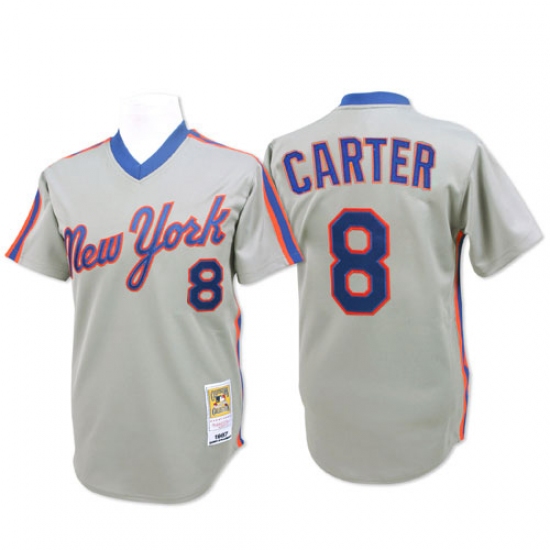 Men's Mitchell and Ness New York Mets #8 Gary Carter Authentic Grey Throwback MLB Jersey