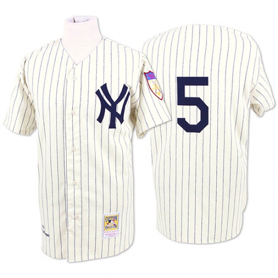 Men's Mitchell and Ness New York Yankees #5 Joe DiMaggio Replica White Throwback MLB Jersey