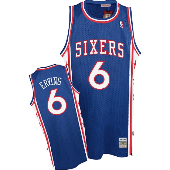 Men's Mitchell and Ness Philadelphia 76ers #6 Julius Erving Swingman Blue Throwback NBA Jersey