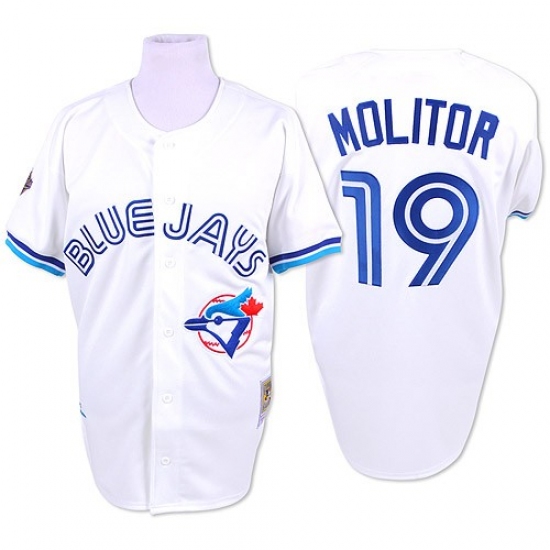 Home>MLB>Toronto Blue Jays>Paul Molitor>Men's Mitchell and Ness Toronto Blue Jays #19 Paul Molitor Authentic White Throwback MLB Jersey