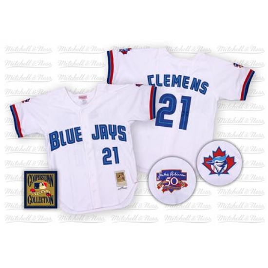 Men's Mitchell and Ness Toronto Blue Jays #21 Roger Clemens Replica White Throwback MLB Jersey