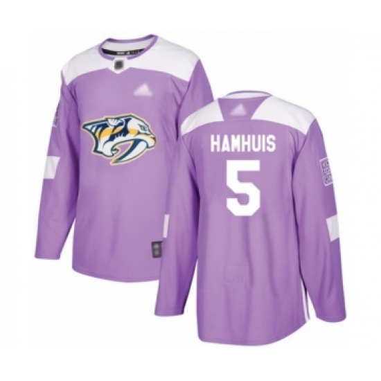 >Men's Nashville Predators #5 Dan Hamhuis Authentic Purple Fights Cancer Practice Hockey Jersey