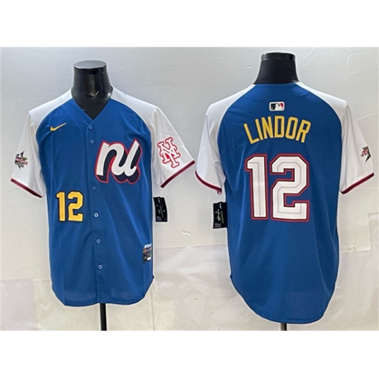 >Men's National League #12 Francisco Lindor Blue Alternate 2025 All-Star Edition Limited Stitched Baseball Jersey