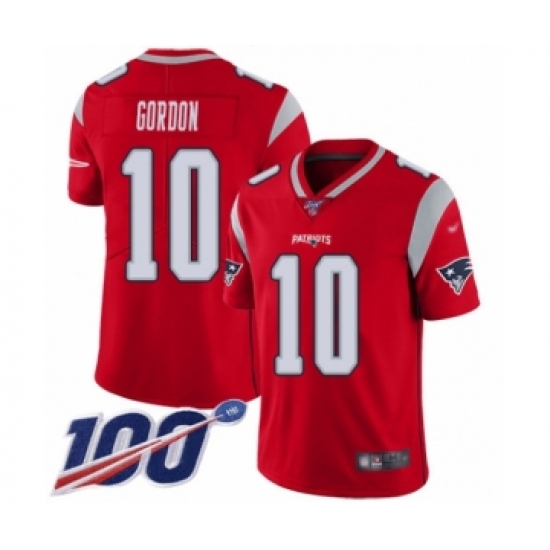 >Men's New England Patriots #10 Josh Gordon Limited Red Inverted Legend 100th Season Football Jersey
