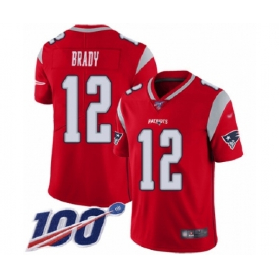Men's New England Patriots #12 Tom Brady Limited Red Inverted Legend 100th Season Football Jersey