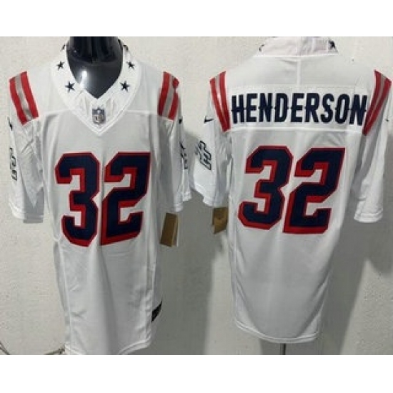 Men's New England Patriots #32 TreVeyon Henderson White 2025 2026 Super Bowl LX F U S E Stitched Jersey