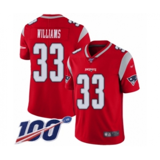 Men's New England Patriots #33 Joejuan Williams Limited Red Inverted Legend 100th Season Football Jersey