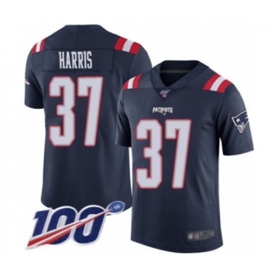 Men's New England Patriots #37 Damien Harris Limited Navy Blue Rush Vapor Untouchable 100th Season Football Jersey