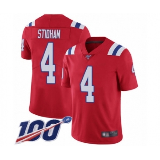 Men's New England Patriots #4 Jarrett Stidham Red Alternate Vapor Untouchable Limited Player 100th Season Football Jersey