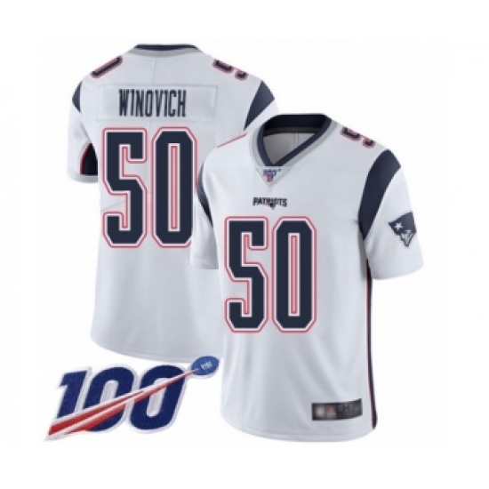 >Men's New England Patriots #50 Chase Winovich White Vapor Untouchable Limited Player 100th Season Football Jersey