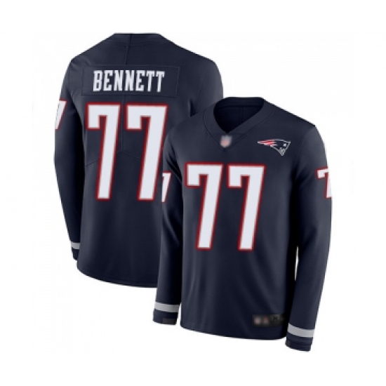 >Men's New England Patriots #77 Michael Bennett Limited Navy Blue Therma Long Sleeve Football Jersey