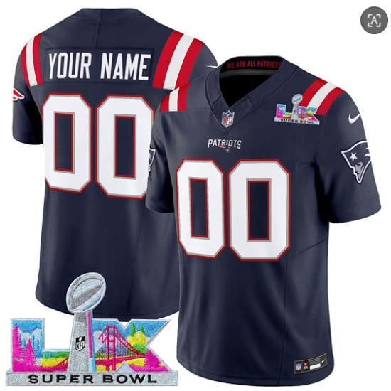 Men's New England Patriots Active Player Custom Navy 2025 F.U.S.E. Super Bowl LX Patch Vapor Limited Football Stitched Jersey