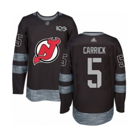 >Men's New Jersey Devils #5 Connor Carrick Authentic Black 1917-2017 100th Anniversary Hockey Jersey