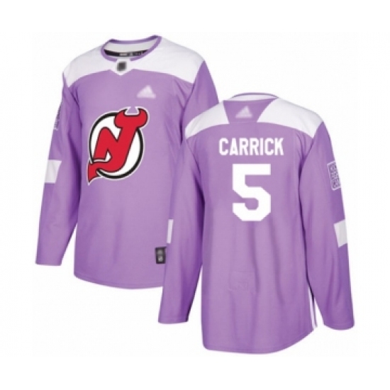 >Men's New Jersey Devils #5 Connor Carrick Authentic Purple Fights Cancer Practice Hockey Jersey
