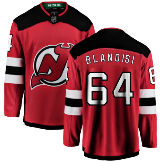 Home>NHL>New Devils Jersey>Joseph Blandisi>Men's New Jersey Devils #64 Joseph Blandisi Fanatics Branded Red Home Breakaway NHL Jersey
