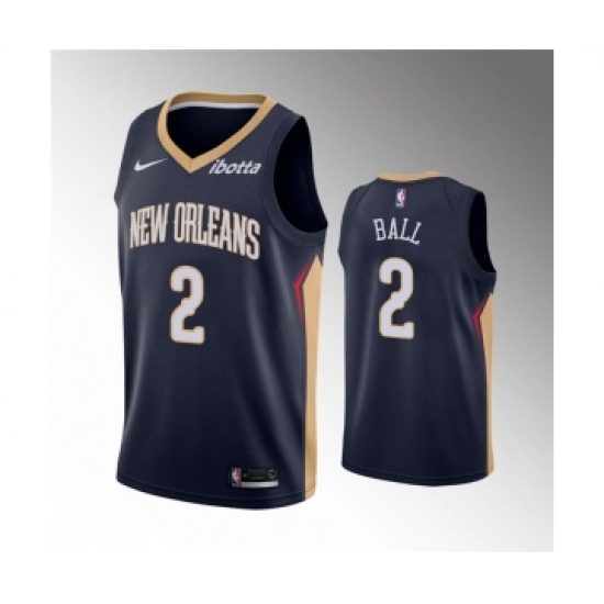 >Men's New Orleans Pelicans #2 Lonzo Ball Navy Icon Edition Stitched Jersey