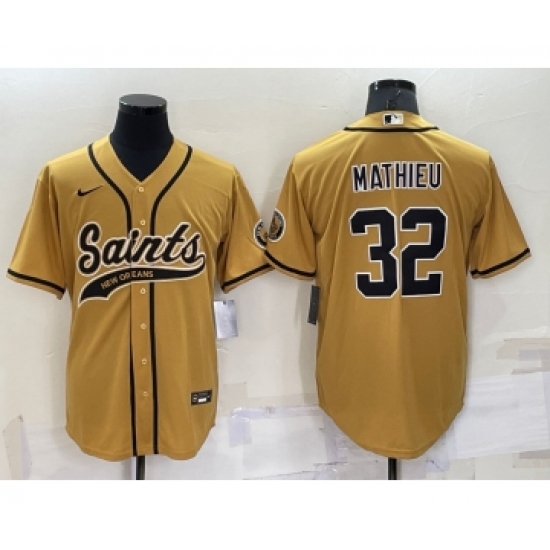 Men's New Orleans Saints #32 Tyrann Mathieu Gold Stitched MLB Cool Base Nike Baseball Jersey