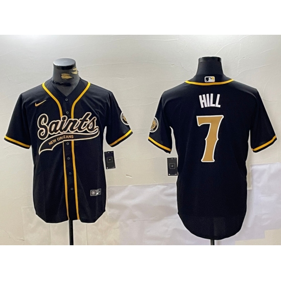 >Men's New Orleans Saints #7 Taysom Hill Black With Cool Base Stitched Baseball Jersey