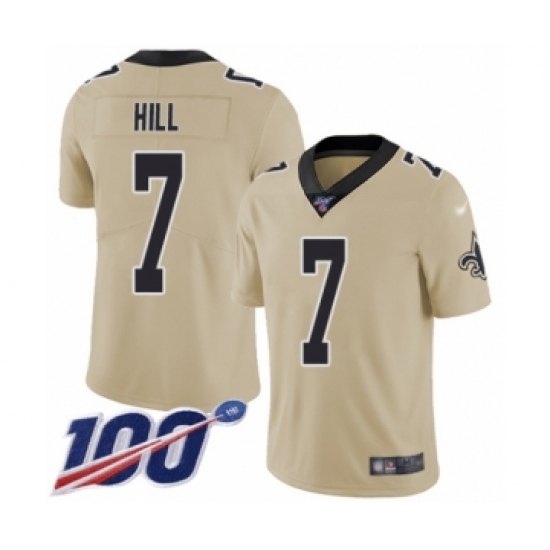 Men's New Orleans Saints #7 Taysom Hill Limited Gold Inverted Legend 100th Season Football Jersey