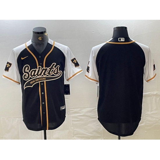Men's Nike New Orleans Saints Black Gold Split Team Big Logo Cool Base Stitched Baseball Jersey