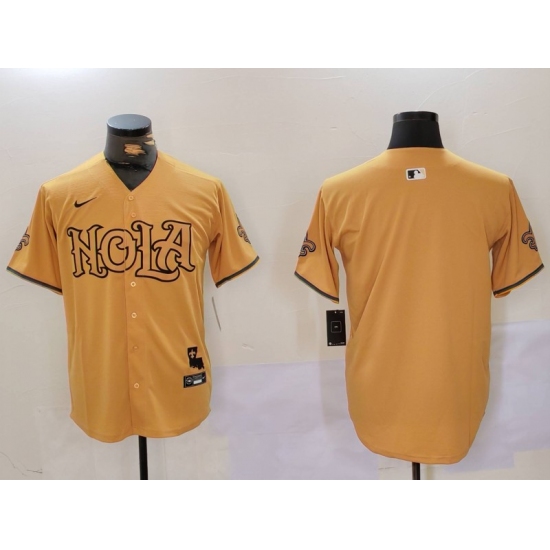 Men's New Orleans Saints Blank Gold Cool Base Stitched Baseball Jersey