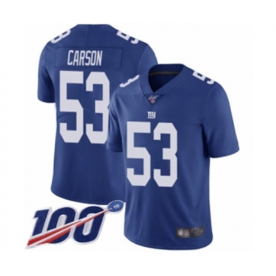 >Men's New York Giants #53 Harry Carson Royal Blue Team Color Vapor Untouchable Limited Player 100th Season Football Jersey