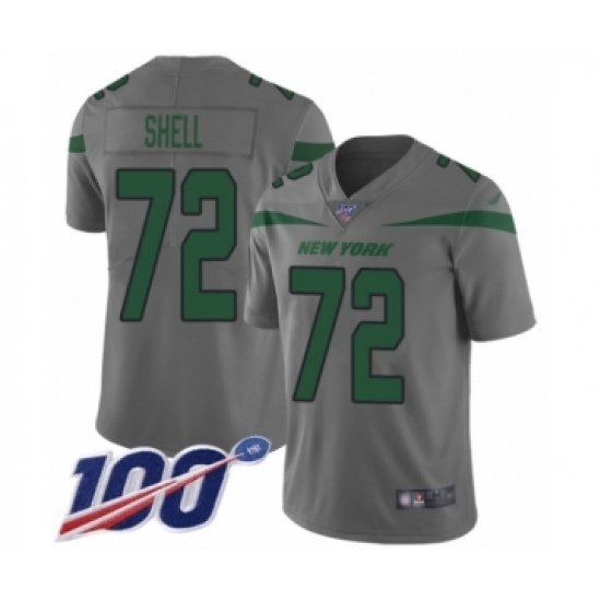 Men's New York Jets #72 Brandon Shell Limited Gray Inverted Legend 100th Season Football Jersey