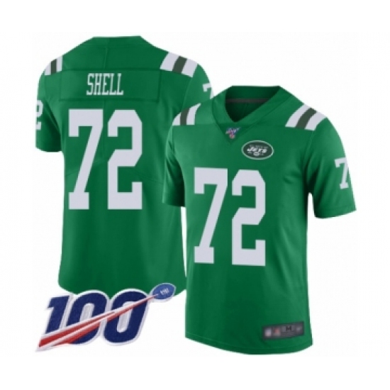 Men's New York Jets #72 Brandon Shell Limited Green Rush Vapor Untouchable 100th Season Football Jersey