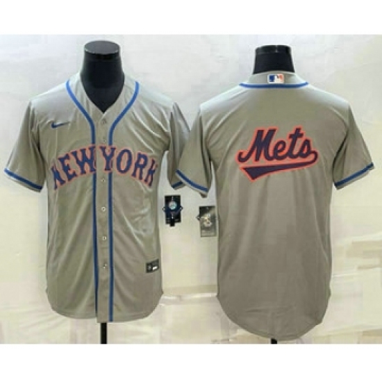 >Men's New York Mets Big Logo Grey Cool Base Stitched Baseball Jersey