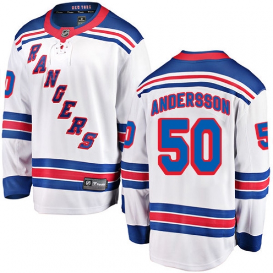 Home>NHL>New York Rangers>Lias Andersson>Men's New York Rangers #50 Lias Andersson Fanatics Branded White Away Breakaway NHL Jersey