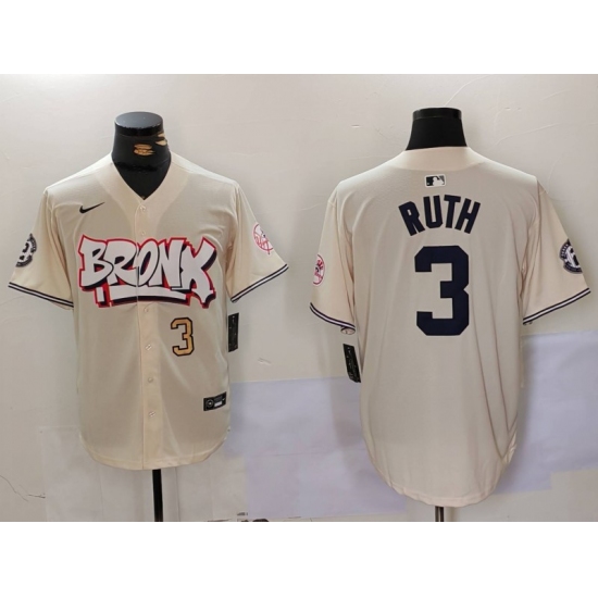 Men's New York Yankees #3 Babe Ruth Cream Limited Stitched Baseball Jerseys
