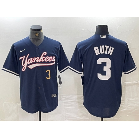 Men's New York Yankees #3 Babe Ruth Number Navy Cool Base Stitched Baseball Jersey