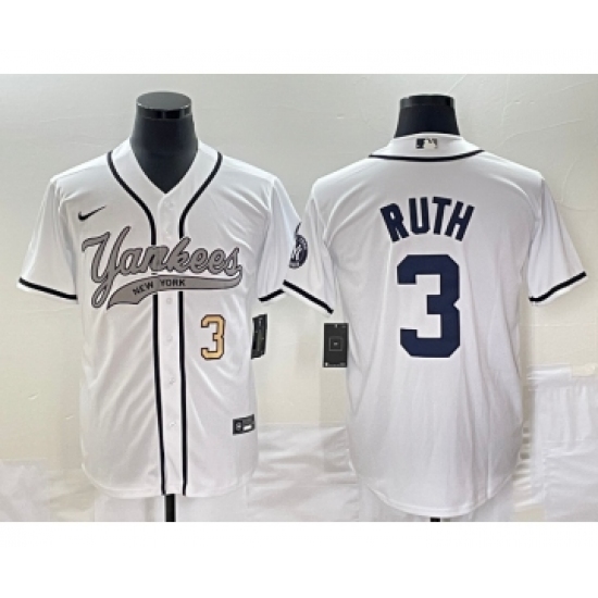 Men's New York Yankees #3 Babe Ruth White Cool Base Stitched Baseball Jersey1