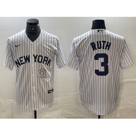 Men's New York Yankees #3 Babe Ruth White Pinstripe Without Name Fashion Cool Base Jerseys