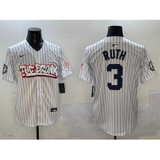 >Men's New York Yankees #3 Babe Ruth White Bronx Graffiti Vapor Limited Stitched Baseball Jersey