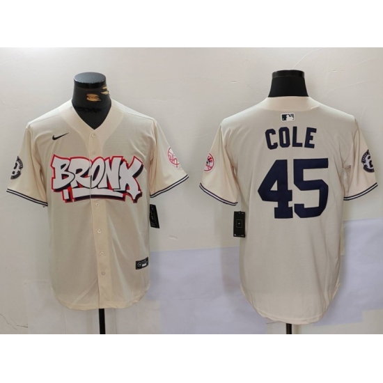 >Men's New York Yankees #45 Gerrit Cole Cream Limited Stitched Baseball Jersey