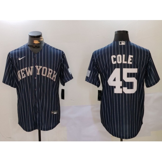 Men's New York Yankees #45 Gerrit Cole Navy Pinstripe Fashion Cool Base Jersey