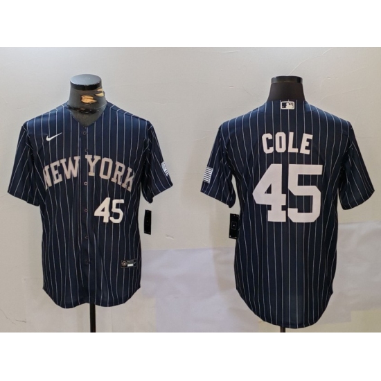 Men's New York Yankees #45 Gerrit Cole Navy Pinstripe Fashion Cool Base Jersey