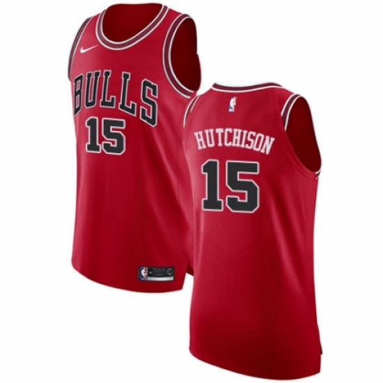 >Men's Nike Chicago Bulls #15 Chandler Hutchison Authentic Red NBA Jersey - Icon Edition