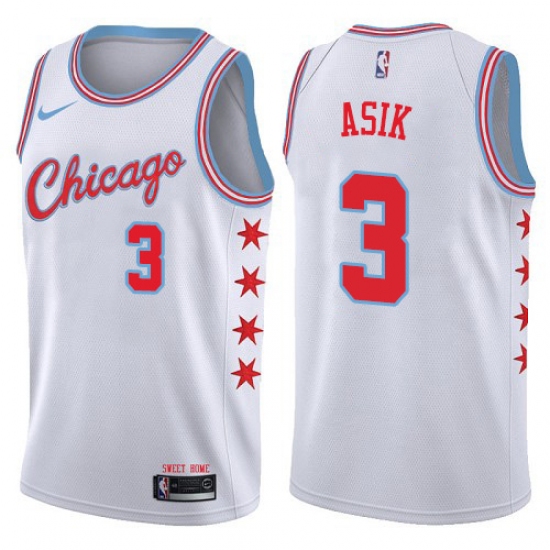 Men's Nike Chicago Bulls #3 Omer Asik Authentic White NBA Jersey - City Edition