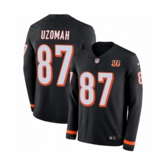 >Men's Nike Cincinnati Bengals #87 C.J. Uzomah Limited Black Therma Long Sleeve NFL Jersey