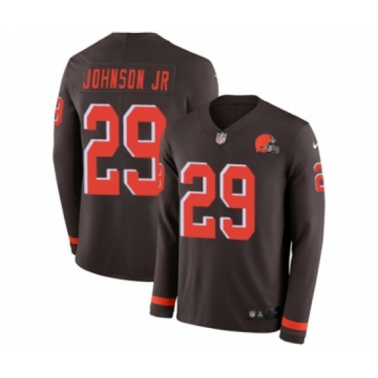 >Men's Nike Cleveland Browns #29 Duke Johnson Limited Brown Therma Long Sleeve NFL Jersey