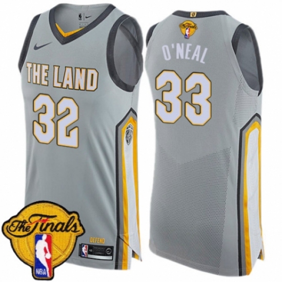 Men's Nike Cleveland Cavaliers #33 Shaquille O'Neal Authentic Gray 2018 NBA Finals Bound NBA Jersey - City Edition