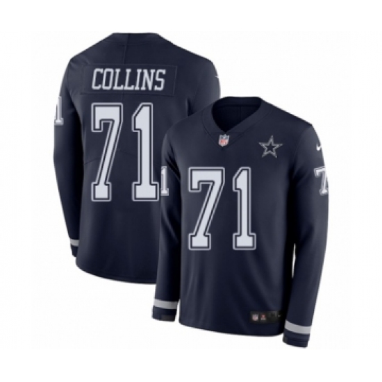 >Men's Nike Dallas Cowboys #71 La'el Collins Limited Navy Blue Therma Long Sleeve NFL Jersey
