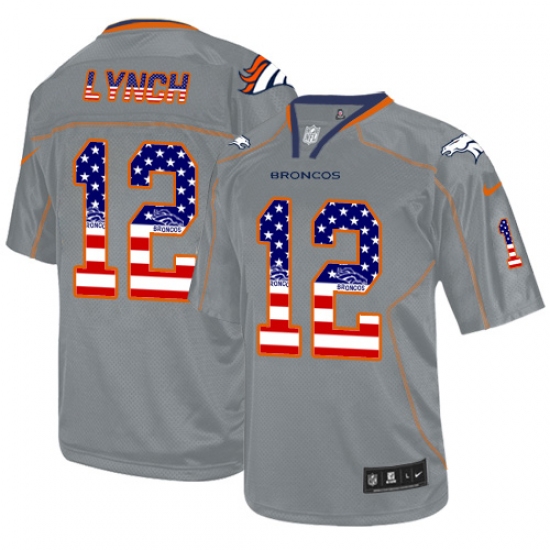 Men's Nike Denver Broncos #12 Paxton Lynch Elite Grey USA Flag Fashion NFL Jersey