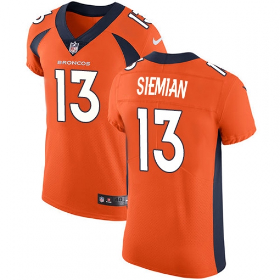 Home>NFL>Denver Broncos>Trevor Siemian>Men's Nike Denver Broncos #13 Trevor Siemian Orange Team Color Vapor Untouchable Elite Player NFL Jersey