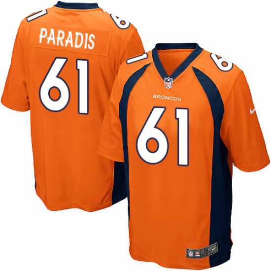 Home>NFL>Denver Broncos>Matt Paradis>Men's Nike Denver Broncos #61 Matt Paradis Game Orange Team Color NFL Jersey